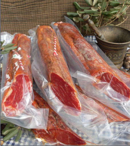 Además cuenta con las caraterísticas propias del lomo ibérico (jugosidad, vetas infiltradas).