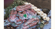 Se embute artesanalmnete en tripa natural con ingredientes naturales, sal, ajo y pimentón de la Vera.